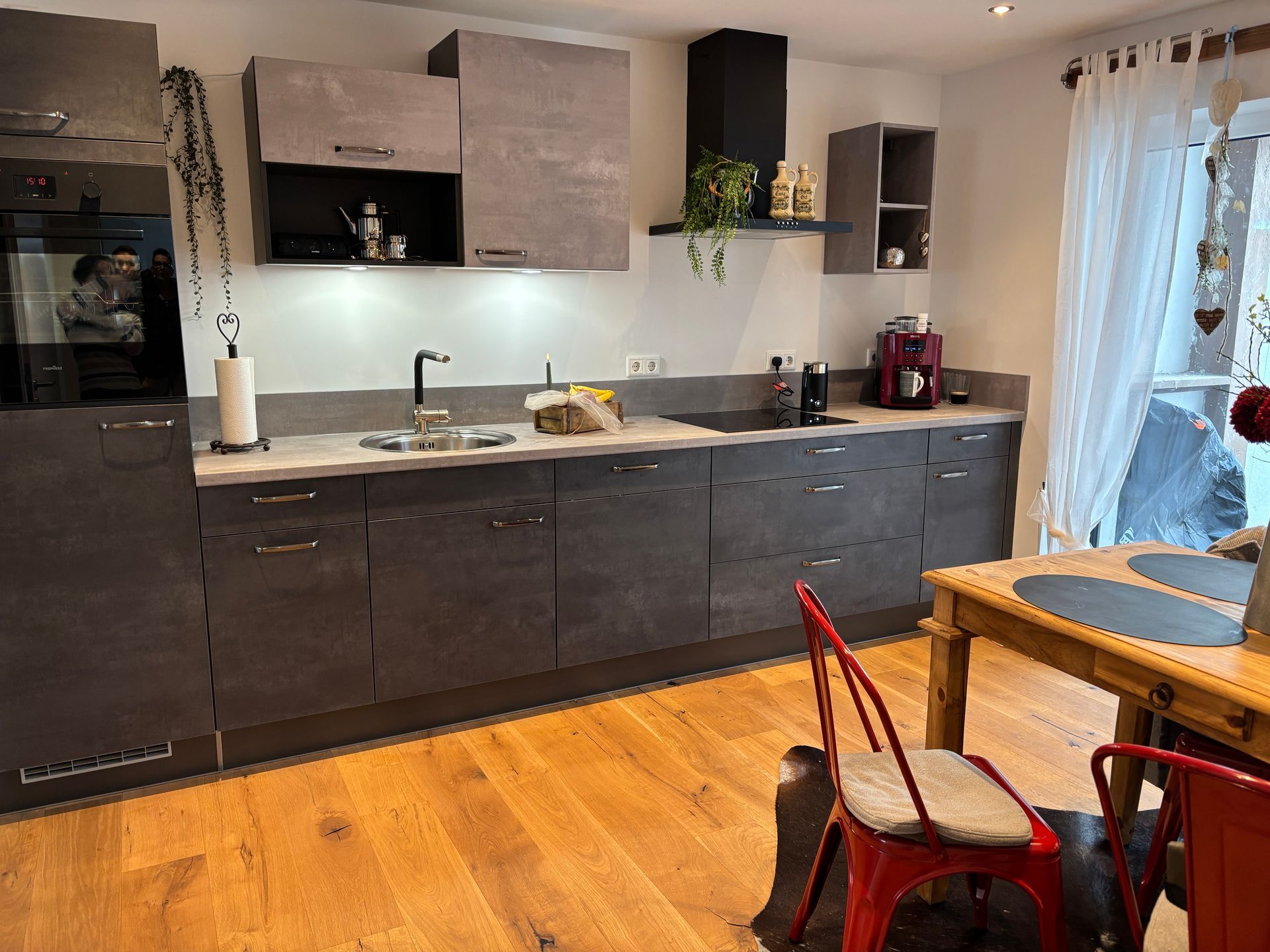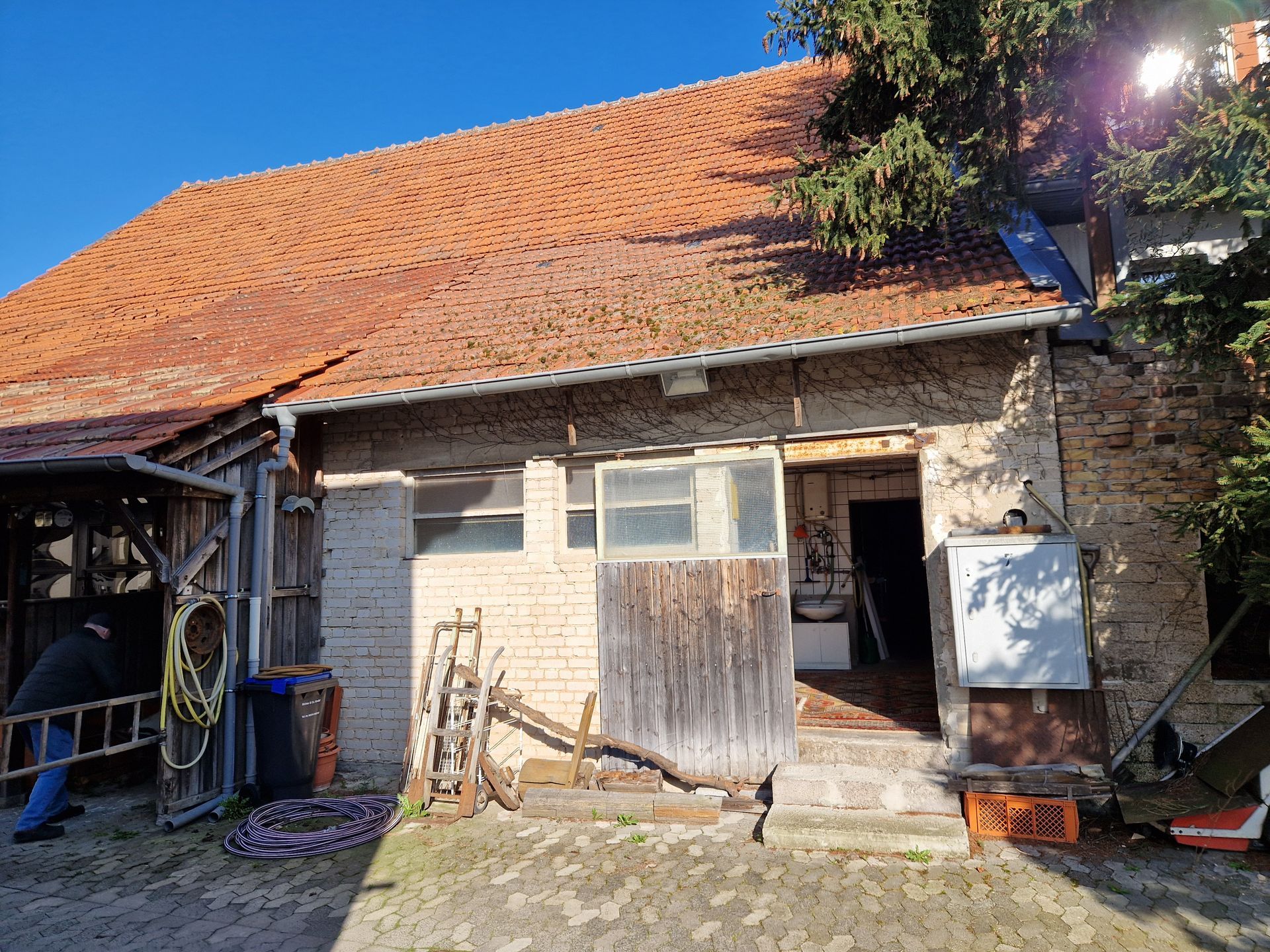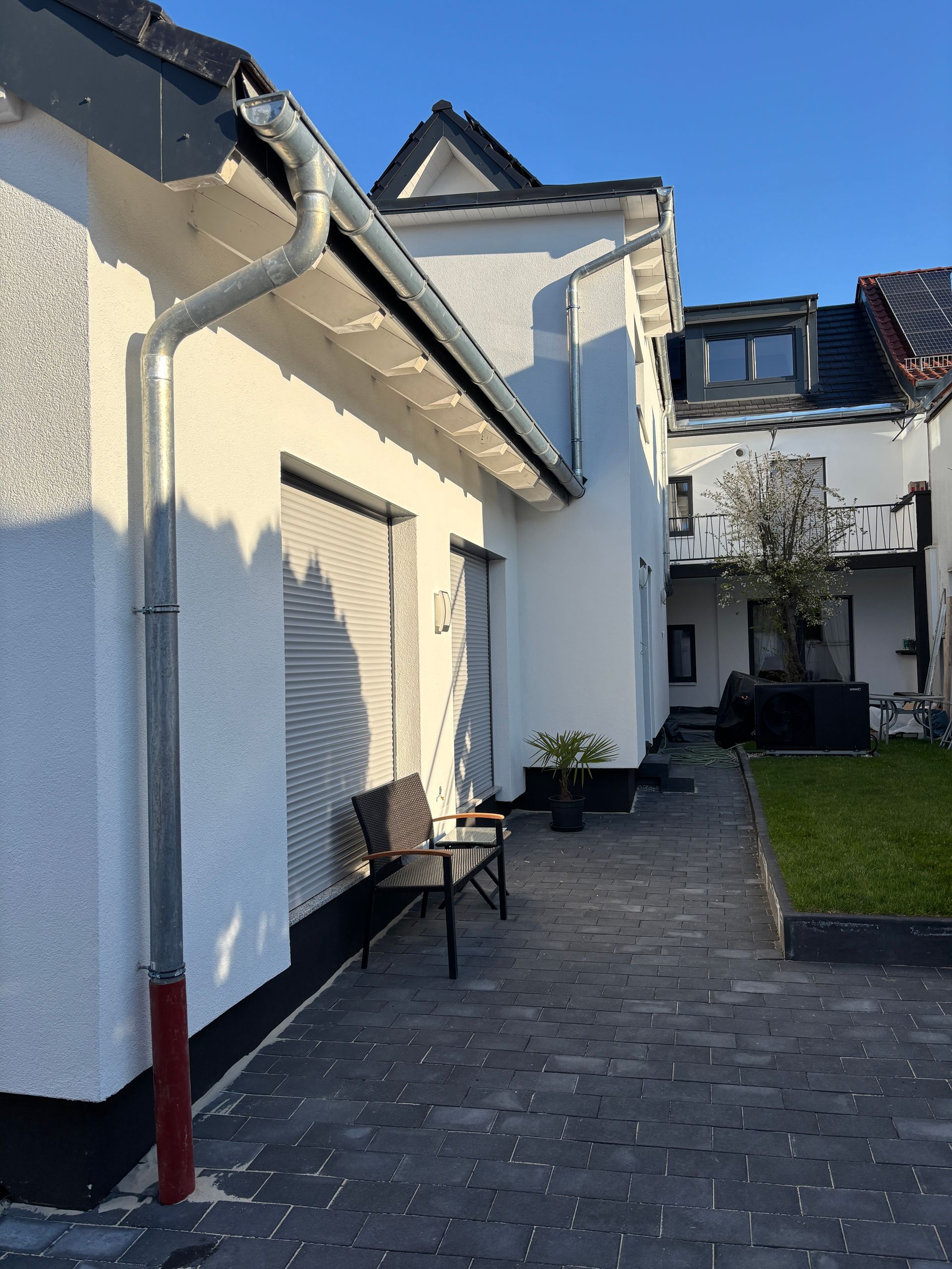 Hier haben wir innerhalb eines Jahres aus einem Zwei-Parteien-Haus ein Vier-Familien-Haus auf Energie-Effizienz-Standard 55 gezaubert. Der angebaute Schweinestall wurde abgerissen und durch eine moderne Loftwohnung mit Blick auf den grünen Innenhof ersetzt. Fenster und Türen wurden erneuert bzw. erweitert, um maximalen Lichteinfall und minimale Geräuschkulisse zu ermöglichen. Ein modernes, zeitloses Design ist uns wichtig, weswegen wir darauf geachtet haben, hochwertige Materialien zu verwenden, mit denen bereits gute Erfahrung gesammelt wurde. Die Wohnungen haben allesamt einen gut durchdachten Grundriss. Das Energiekonzept basiert auf einer neuen Photovoltaikanlage inklusive Wärmepumpe mit dynamischen Stromzählern, Fußbodenheizung und E-Ladestationen im Hof.